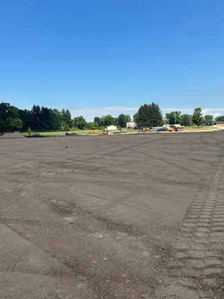 Before any construction could begin, crews performed extensive earthwork, grading the land to proper elevations and preparing the sub-base for field installation. The existing soil was run through a sifter on-site to remove debris and produce clean, fine black dirt—this high-quality topsoil will be reused around the fields to support the grass fields. The turf fields will get six inches of stone placed to prep the area for turf. The stones will provide drainage and stability beneath the turf surface.